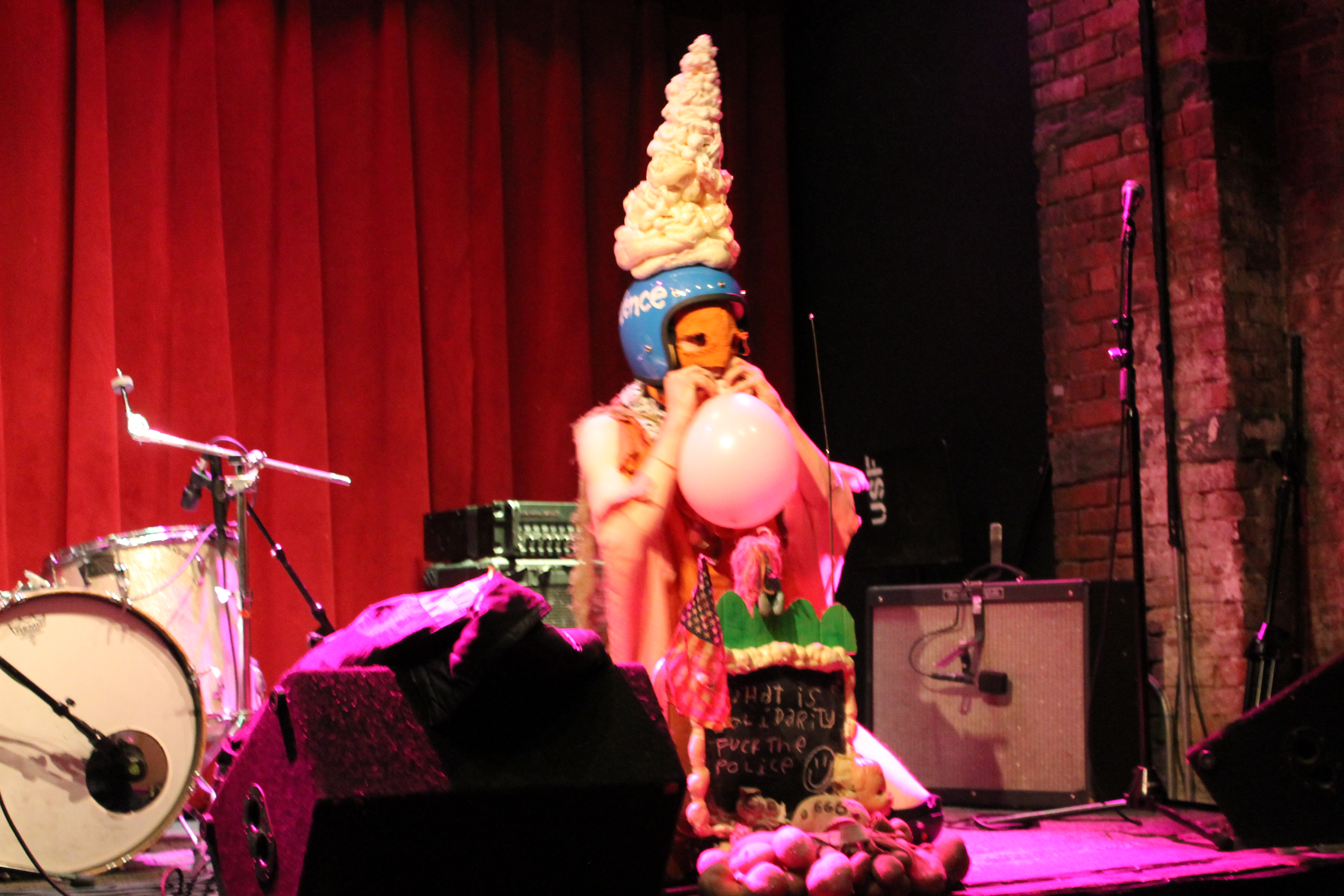 Meanwhile Kalan, whose recent arrest has prompted some pretty bizarre political commentary as well as the more straightforward news coverage, arranged his equipment and assorted beasts, and ended the presentation with puppetry and balloon music.
