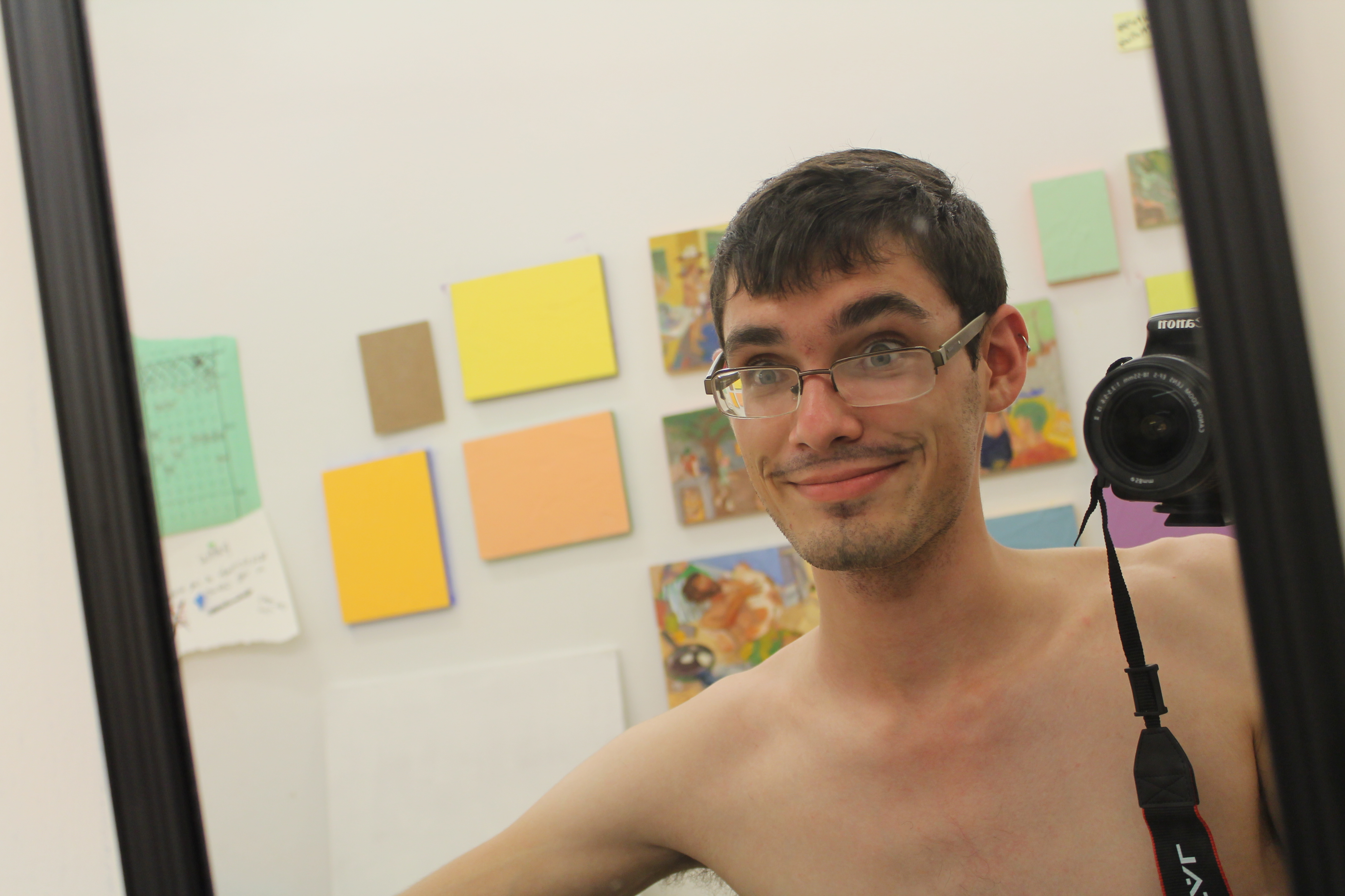 Designing was fun. Milo let me hold his charcoal pencil briefly, and I used it to draw a mustache on my face: